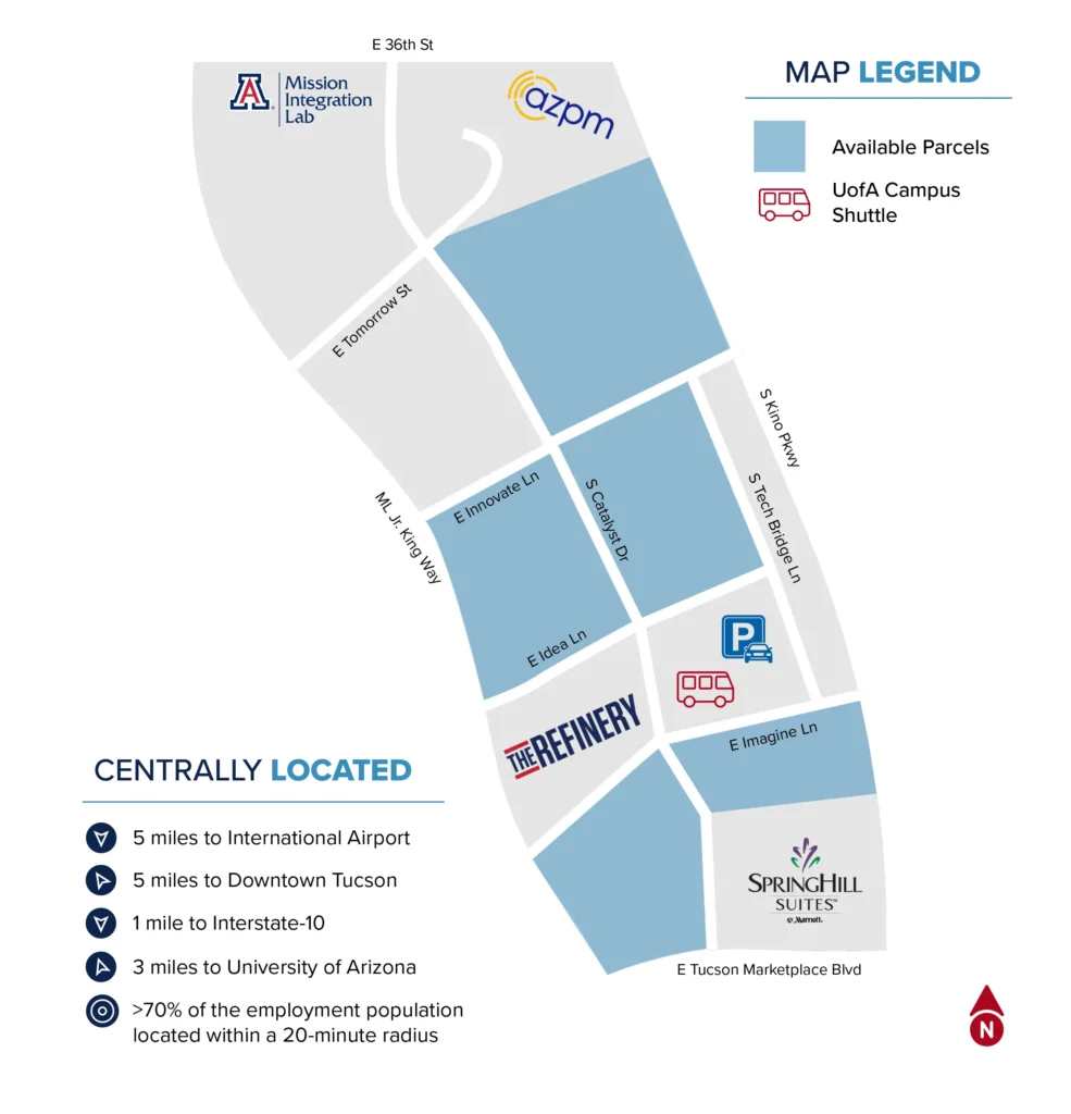 Strategically located in the heart of Tucson—just minutes from the University of Arizona, downtown, and the airport—UA Tech Park at The Bridges is shaping the future of innovation and industry collaboration. This emerging tech hub is designed to drive cutting-edge research, fuel entrepreneurship, and connect industry with world-class university resources.